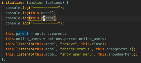 model์ ๋จ๋๋ฐ parent๋ ์๋ด๋ค. backbone view ๋ด์ ์ผ๋ก model ํด์ํค๋ฅผ ํ์ธํ์ฌ attribute๋ฅผ ์ ํ ํ์ง๋ง parent ํด์ํค๋ ํ์ธํ์ง ์๋ ๊ฒ์ด๋ค. ๋๋ฌธ์ ์๋์ฒ๋ผ ์ง์ ๊ฐ์ฒด์ attribute๋ฅผ ์ถ๊ฐํด์ค์ผํ๋ค.