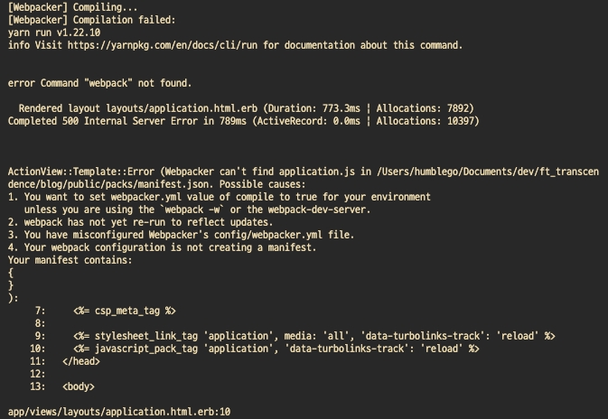 μλλλ€λ₯ΌκΉ webpacker μ€μΉλ μλ£λμμ§λ§ http://loaclhost:3000/articles μμ²μ΄ μ λλ‘ μ²λ¦¬λμ§ μλλ€.