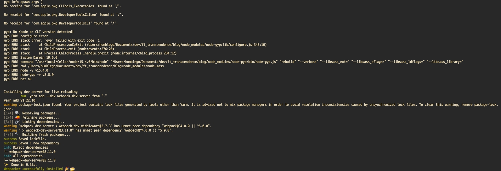 rails webpacker:installκ·Έλ°λ° μλμ²λΌ gyp ERR! κ° λ°μνμλ€.