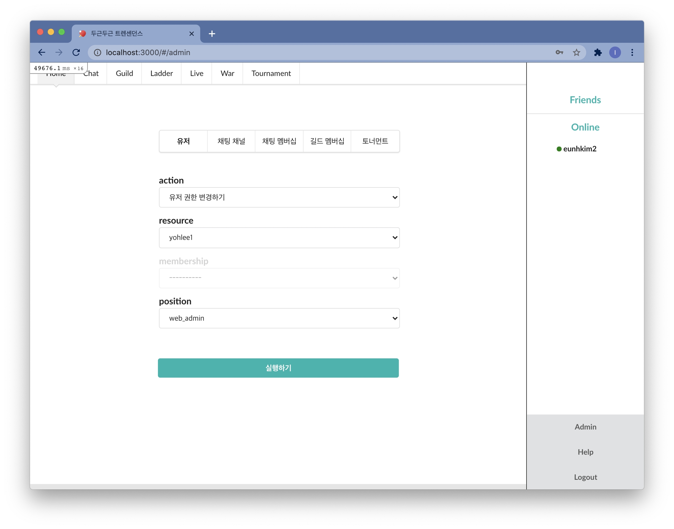 ์กฐ์ํ๊ณ ์ ํ๋ ์์์ ๋ฒํผ์ ํด๋ฆญํ๋ฉด action๊ณผ resource, membership, position์ด ๊ฐ ์์์ ์ฑ๊ฒฉ์ ๋ง๊ฒ ์